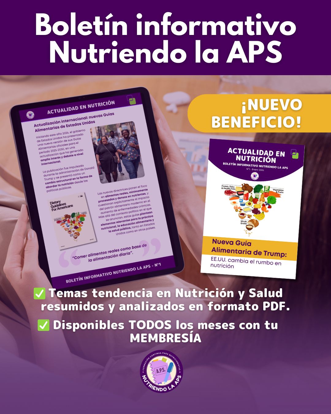 Accede a nuestros cursos de forma automática solo indicando que quieres inscribirte. A través de esta membresía podrás tener derecho a 3 cursos y 2 Cursos Breves (Ex Talleres) de Nutriendo la APS junto a boletines exclusivos para tí.