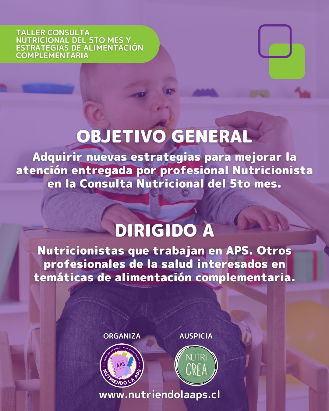 La consulta nutricional del 5to mes es una pieza clave para las familias de Chile: una actividad de exclusiva responsabilidad de las y los nutricionistas en que se debe evaluar el estado de salud de las y los niños, realiza derivaciones oportunas, fomentar la lactancia materna y educar sobre la incorporación de alimentación complementaria. Es en este ultima área donde se han propuesto nuevos métodos de entrega de alimentación, más allá de la clásica papilla de verduras; Además de ello se han elaborado nuevas e ingeniosas herramientas para ofrecer dichos alimentos a los lactantes. ¿Será necesario actualizar los conocimientos en materia de educación y fomento de la alimentación complementaria?